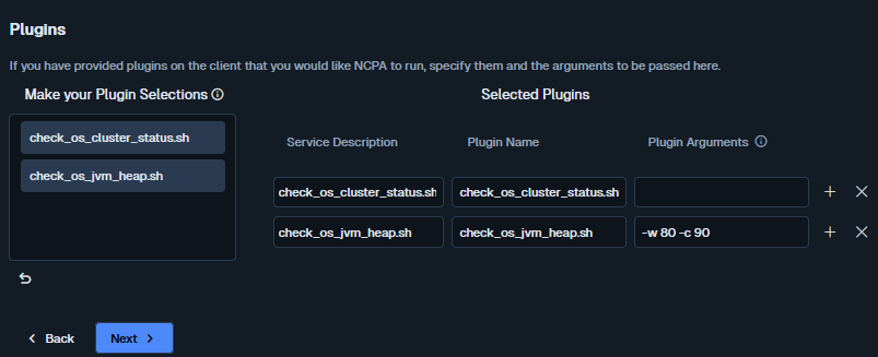 If check_os_cluster_status.sh is selected, Plugin Arguments should be left blank.
